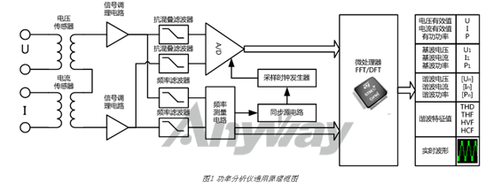圖1為通用的功率分析儀原理框圖。