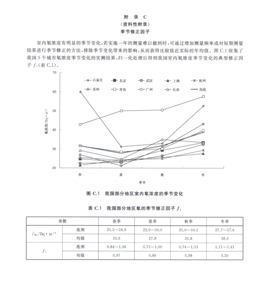 5.4不能長期測量時,應根據實際情況適當增加測量頻率或者對季度的測量結果按照5.3中所描述進行修正,以反映季節變化的平均值。理解修正因子可選用當地實測結果;如無相關資料,則需參考附錄C中的建議值。附錄:以圖片形式附上,取自*標準網。