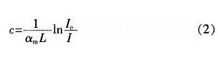 式中:αm為摩爾分子吸收系數(shù);c為待測(cè)氣體濃度;L為光和氣體的作用長(zhǎng)度(傳感長(zhǎng)度)。對(duì)式(1)進(jìn)行變換,得: