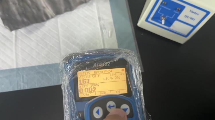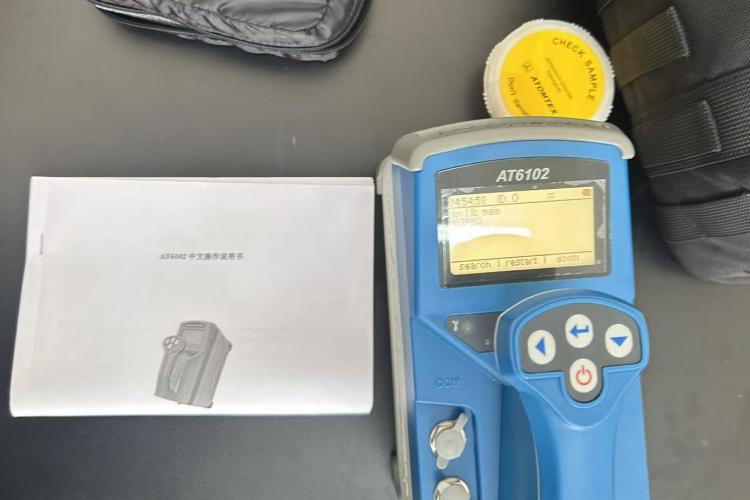 隨后使用AT6102對實驗室中的輻射源樣本進行了測試。儀器迅速顯示了監測到的數據,展示了AT6102在環境輻射監測中的高效性和準確性。