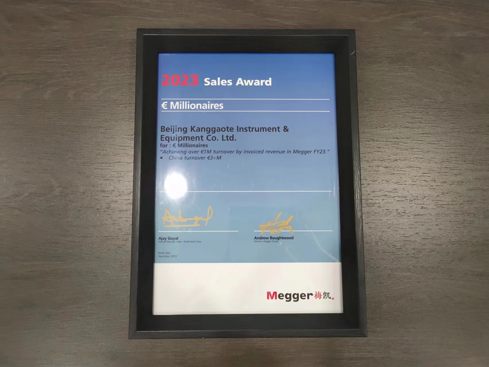 北京康高特儀器設備導讀:北京康高特儀器設備有限公司榮獲Megger China 2023年度銷售*,并且再次獲得“百萬歐元俱樂部成員”獎項,這已經是康高特連續第4年獲得此榮譽!